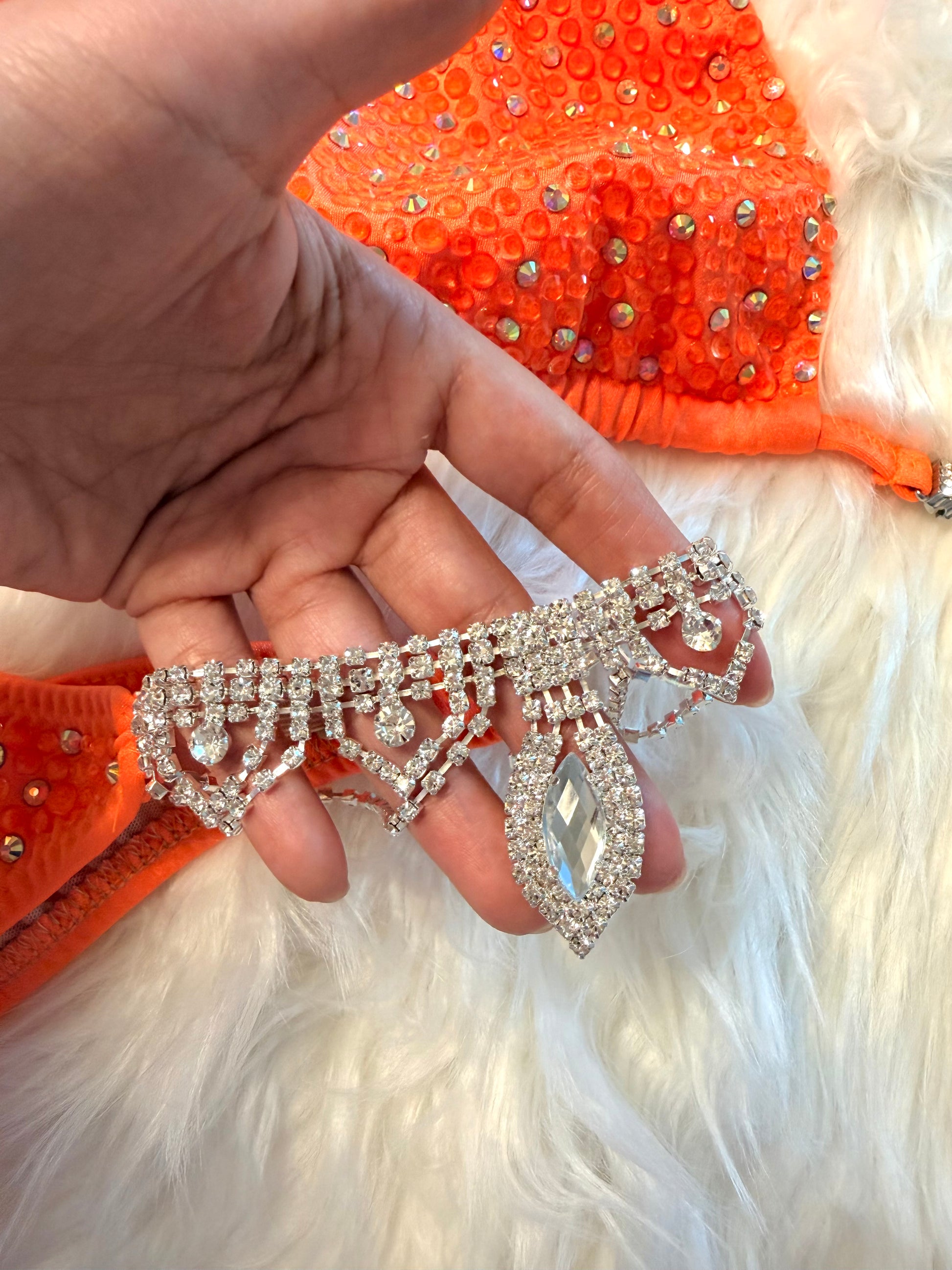 - Metal conectors with clear rhinestones.